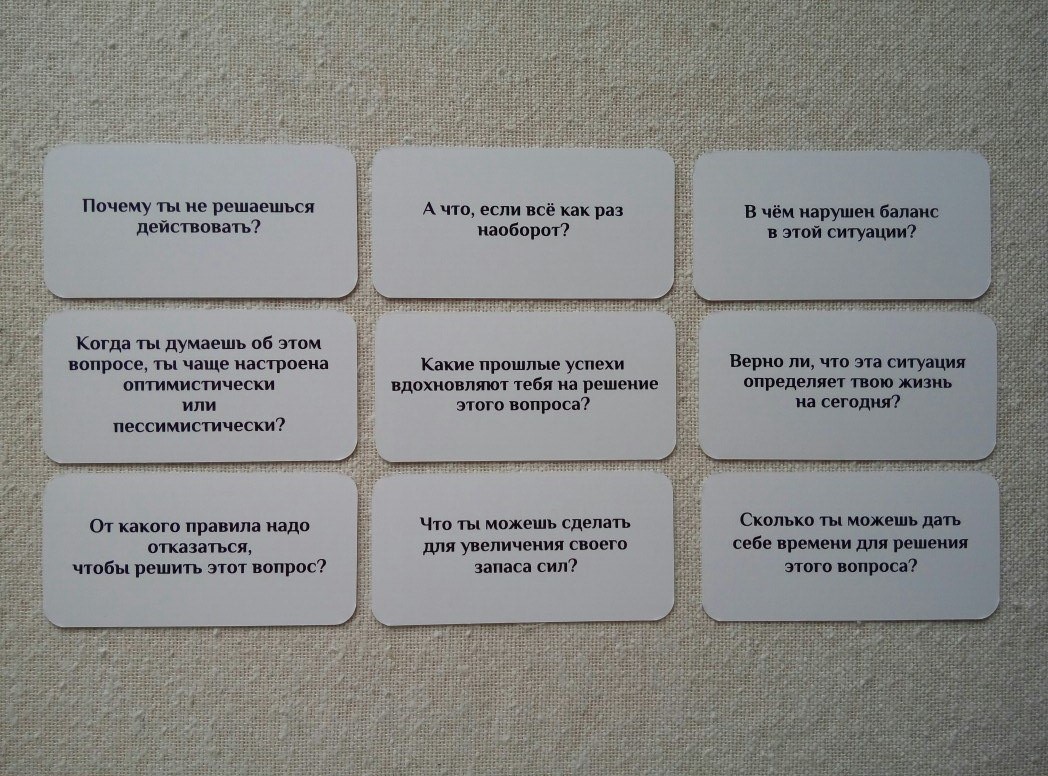 В ней — только вопросы. 100 карточек. И сто проясняющих, провокативных, диагностических, терапевтических и самых разных других вопросов.
