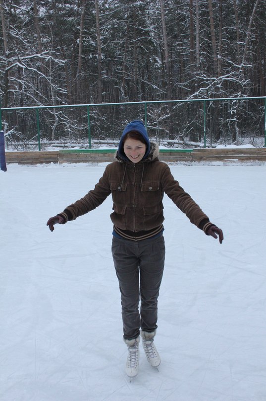 Но в этот раз пешком я ходила минут 10, потом муж, как настоящий мужчина, покатал меня, а потом я начала двигаться сама, слушая своё тело. И оказалось так интересно! Я совершенно не помню, как там правильно всё делать по инструкции (а учил меня папа в детстве, он занимался фигурным катанием), но тело само мне подсказывало, как надо наклоняться, как сгибать ноги, как держать стопу…